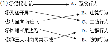 请将下列动物与其相应的行为对应起来: