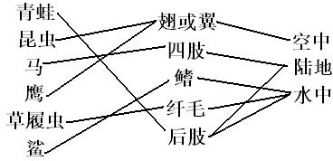 连线题:请将下列动物与其主要运动器官及其主要生活环境连接起来.