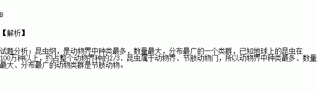 动物界中,分布最广、数量最大、种类最多的类群是( )