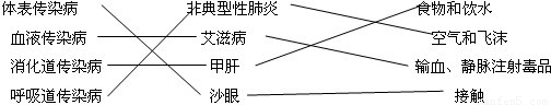 把下列的传染病和具体病例、传播途径用直线正确地连接起来.体表传染病 非典型性肺炎 食物和饮水