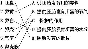 将鸟卵的下列结构与它们对应的功能连接起来: