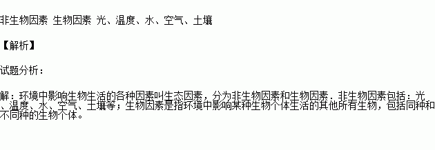 生态因素可分为 和 。生物生活环境中的非生物因素主要包括 、 、 、 、 。