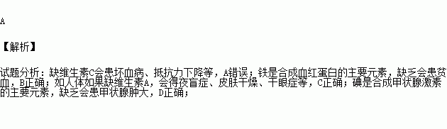 下列人体所需的营养物质与缺乏症对应错误的是( )