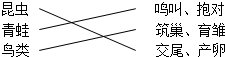 解答:解:昆虫是雌雄异体,异体受精的动物,生殖季节雌雄虫交尾,产下受精卵;