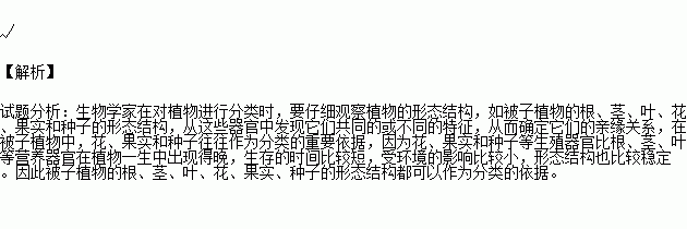 被子植物的根、茎、叶、花、果实、种子的形态结构都可以作为分类的依据。( )
