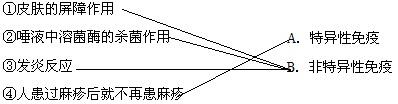 请将右侧免疫类型的序号填在左侧相应生理现象的横线内: