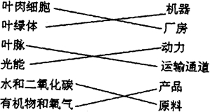 20.有人形象地把绿色植物比作能生产有机物的天然工厂,请你将如图对应的部分用线连起来.分析 叶片由叶肉、叶脉、表皮三部分组成.植物的光合作用是植物在叶绿体里利用光能把二氧化碳和水合成有机物,释放氧气,同时把光能转变成化学能储存在合成的有机物中的过程.分析答题.