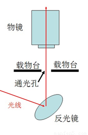 通过图示我们可以看出,光线会依次经过:光圈→通光孔→玻片标本→物镜→镜筒→目镜