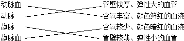 请将血管与血液(左侧)与特点(右侧)用线段连接起来.
