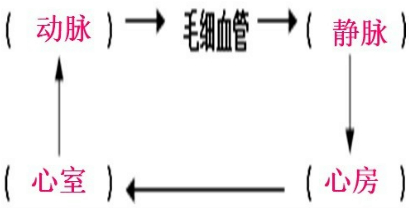 将动脉、静脉、心房、心室按正常血液流动的顺序填入括号内