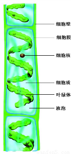 可见,水绵属于多细胞藻类植物,藻类植物的结构简单,无根、茎、叶的分化,不结种子,用孢子繁殖,从图中可以看出,水绵细胞内有带状的叶绿体,呈现绿色,属于绿藻,丝状.