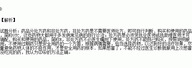 ③到药店购买有R标志的感冒药,按药品的说明书服药 ④到药店购买有OTC标志的感冒药,按药品的说明书服药.