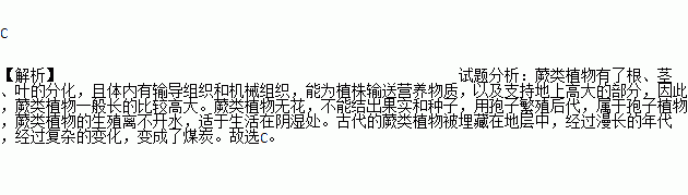 D. 煤的形成与距今2亿多年前的高大蕨类植物有关