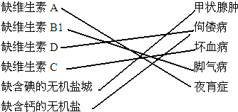点评:维生素和无机盐的作用及缺乏症是考试的重点,要注意掌握,可结合上面表格中的内容比较记忆.