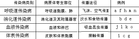 ¸ù¾Ý´«²¥Í¾¾¶µÄ²»Í¬ ´«È¾²¡¿ÉÒÔ·ÖΪ4Àà Ç뽫ÏÂÁд«È¾²¡¹éÀàÌîÈëÏÂ±í£º