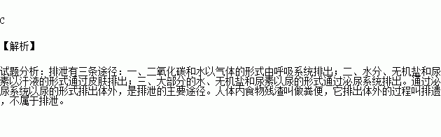 A.尿液 B.汗液 C.粪便 D.呼出的二氧化碳