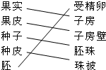 解答:解:当一朵花完成传粉与受精后,子房的发育: