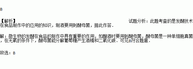 A. 乳酸杆菌 B. 单细胞酵母菌 C. 醋酸菌 D. 青霉菌