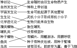 分析:(1)生命起源学说:有神创论、自然发生说、宇宙发生说、生生说、化学进化论等,我们普遍倾向于化学进化论.