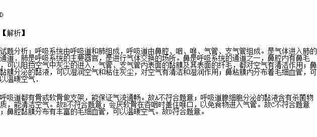 D.鼻腔黏膜分布有丰富的毛细血管,可充分进行气体交换