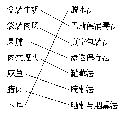 请把左侧的食品与右侧的保存方法用线连接起来。