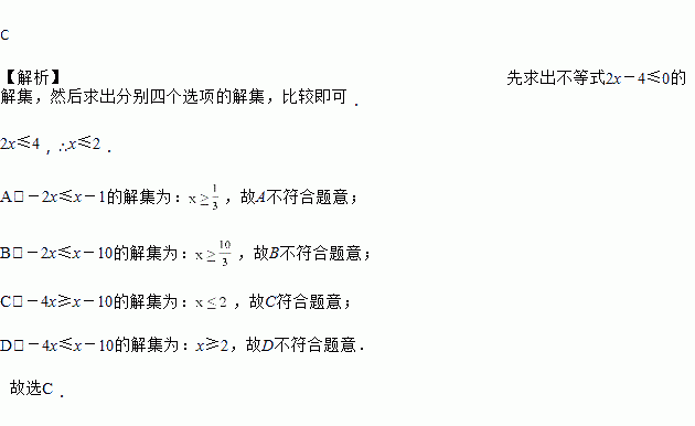 与不等式2x-4≤0的解集相同的不等式是( )
