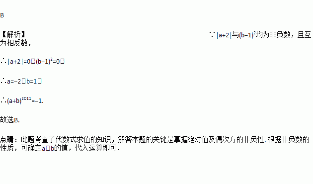如果与(b-1)2互为相反数, 那么代数式的值是( )