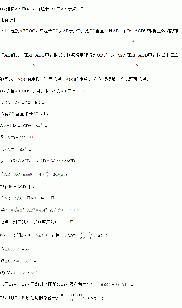 的交点,同时又是台历顶端连接日历的螺旋线圈所在圆的圆心.现测得![]()