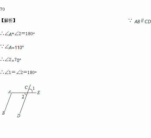 如图,直线AB,CD被直线AE所截,AB∥CD,∠A=110°,则∠1=__度.