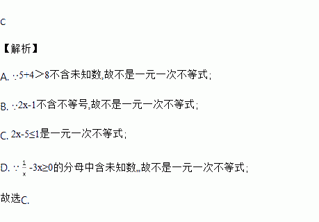 下列各式中,是一元一次不等式的是( )