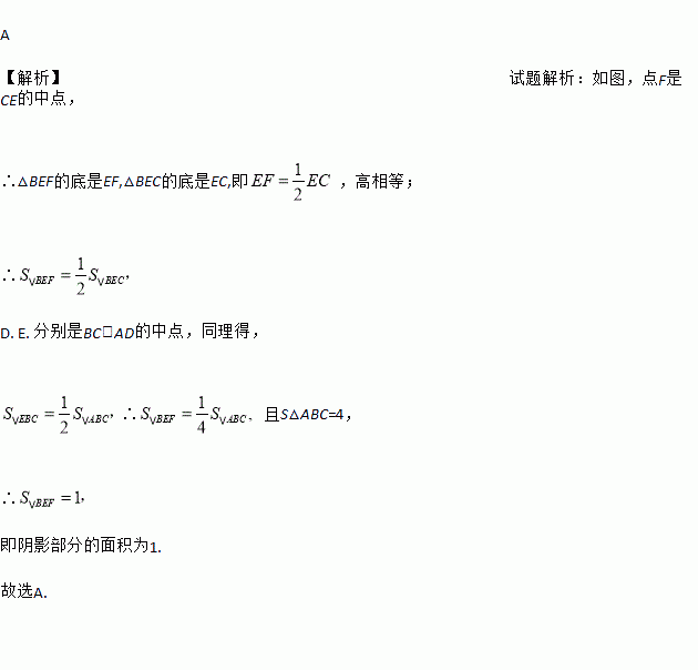 如图△ABC中,已知D、E、F分别是BC、AD、CE的中点,且S△ABC=4,那么阴影部分的面积等于…( )