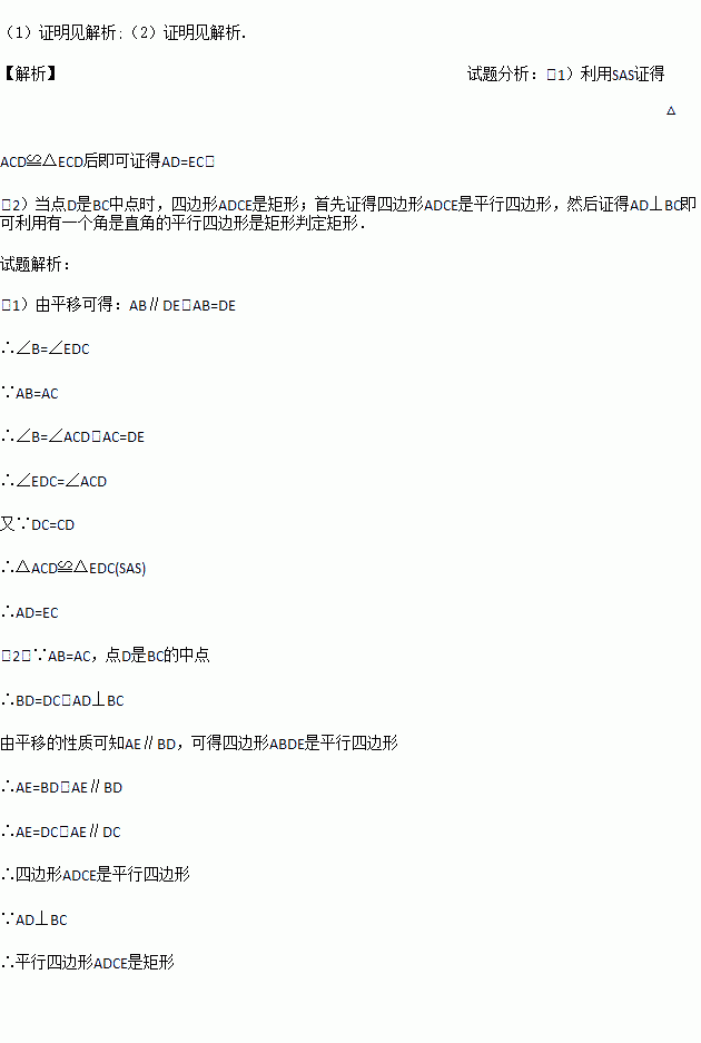 (2)当点D是BC的中点时,求证:四边形ADCE是矩形.