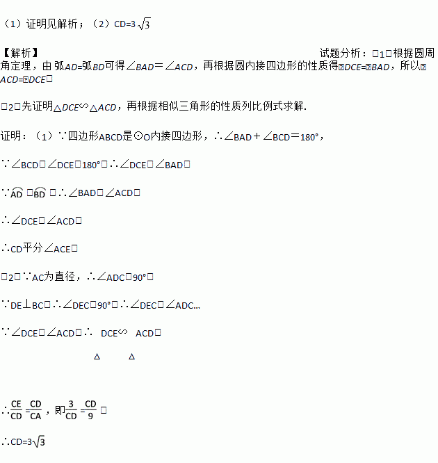 (1)求证:CD平分∠ACE;