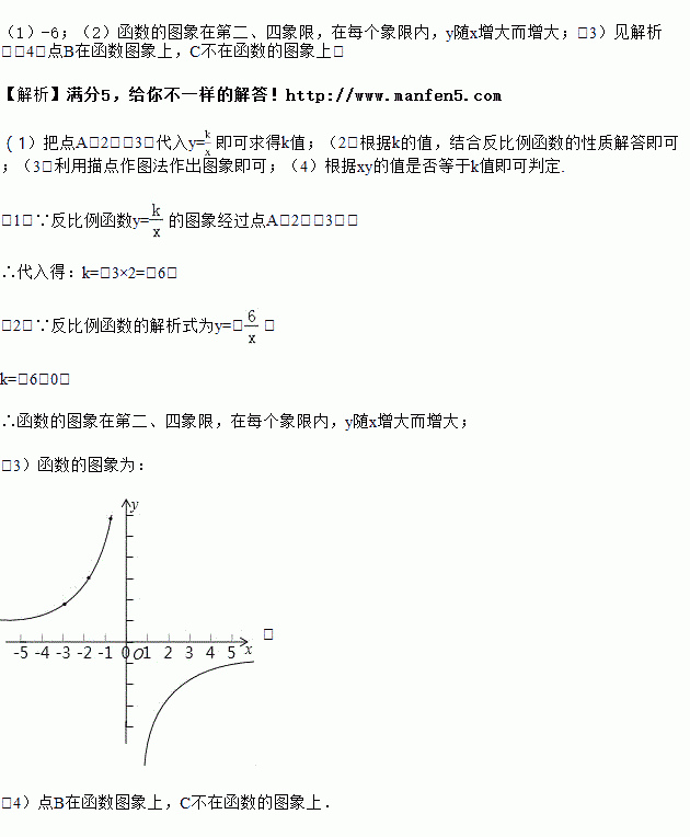 (2)函数的图象在哪几个象限?y随x的增大怎样变化?