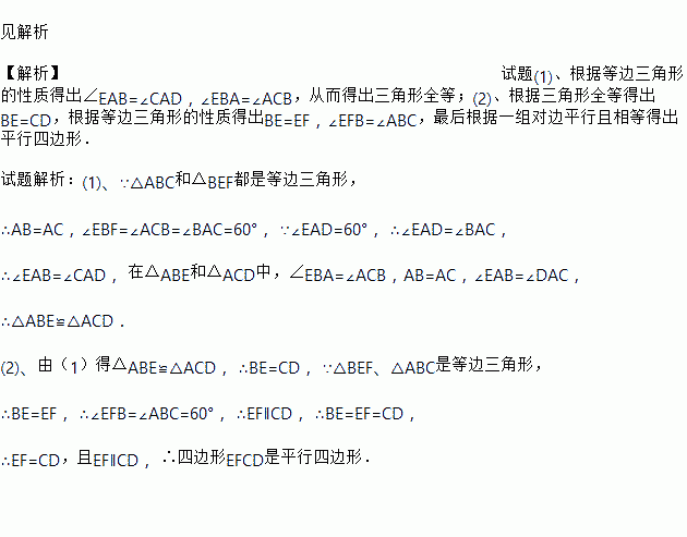 如图,△ABC和△BEF都是等边三角形,点D在BC边上,点F在AB边上,且∠EAD=60°,连接ED、CF.