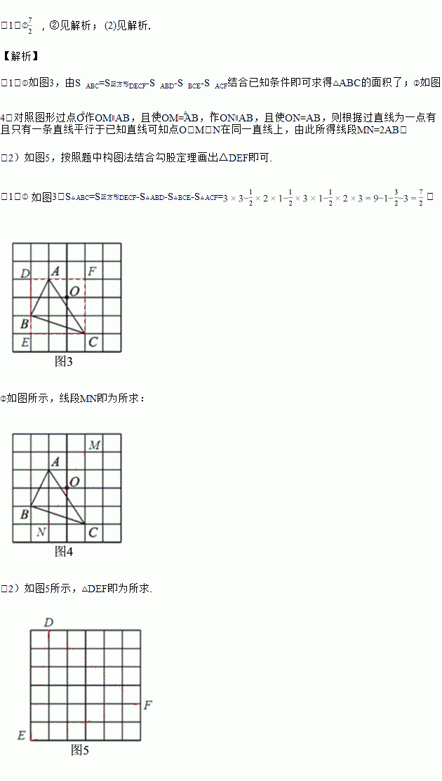 小明是这样解决问题的:如图1所示,先画一个正方形网格(每个小正方形的边长为1),再在网格中画出格点△ABC(即△ABC三个顶点都在小正方形的顶点处),从而借助网格就能计算出△ABC的面积他把这种解决问题的方法称为构图法.