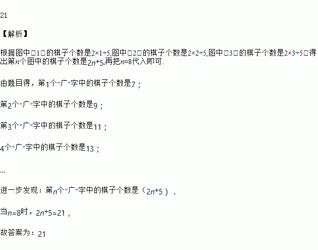 如图①,②,③,④,…,是用围棋棋子按照某种规律摆成的一行“广”字,按照这种规律,第8个“广”字中的棋子个数是_____.