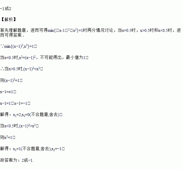 对于实数p,q,我们用符号min{p,q}表示p,q两数中较小的数,如min{1,2}=1,min{﹣2,﹣3}=﹣3,若min{(x+1)2,x2}=1,则x=______.