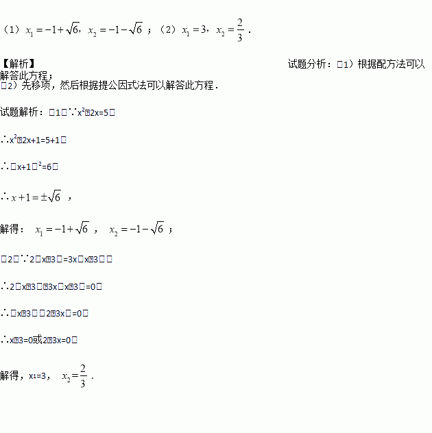 解方程:(1)x2﹣2x=5 (2)2(x﹣3)=3x(x﹣3)