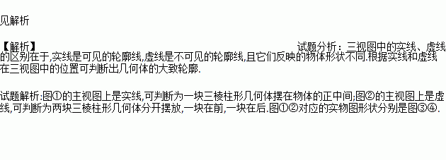 图①②分别是两个物体的三个视图,图③④是这两个物体的实物图,试比较两者的区别与联系,并找出它们各自对应的实物.