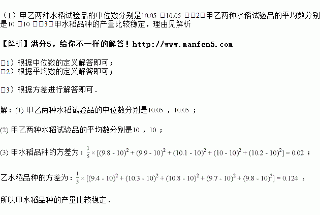 甲乙两种水稻试验品的中位数分别是多少?![]()