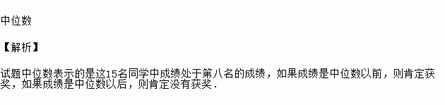 学校举行“纪念反法西斯战争胜利70周年”演讲比赛,共有15名同学进入决赛,比赛将评出金奖1名,银奖3名,铜奖4名.某参赛选手知道自己的分数后,要判断自己能否获奖,他应该关注的是有关成绩的 .(填“平均数”、“中位数”或“众数”)