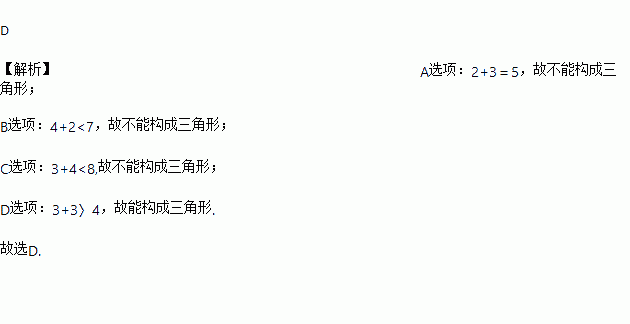 下列长度的三根小木棒能构成三角形的是( )