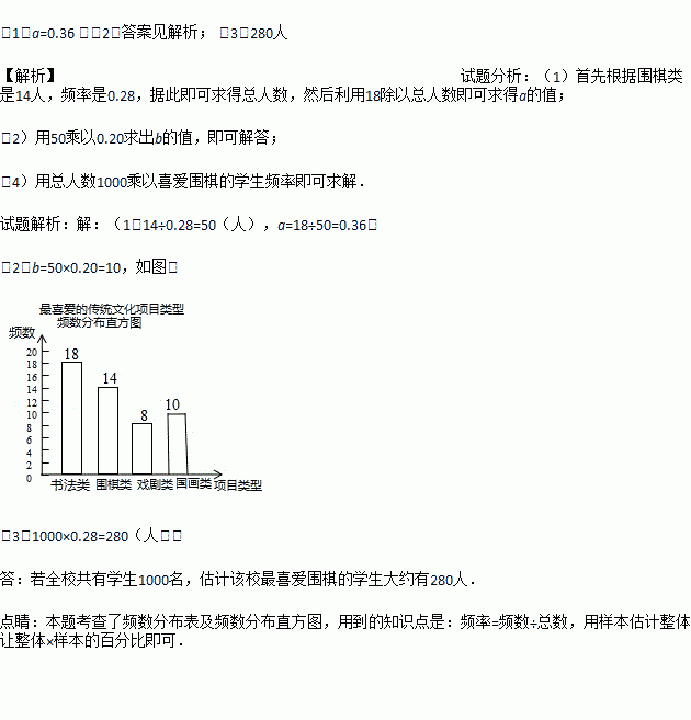 (3)若全校共有学生1000名,估计该校最喜爱围棋的学生大约有多少人?
