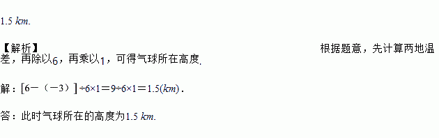 某地区高度每增加1 km,气温大约降低6 ℃.已测得该地高空一气球所在高度的气温为-3 ℃,地面气温为6 ℃.求此时气球所在的高度.