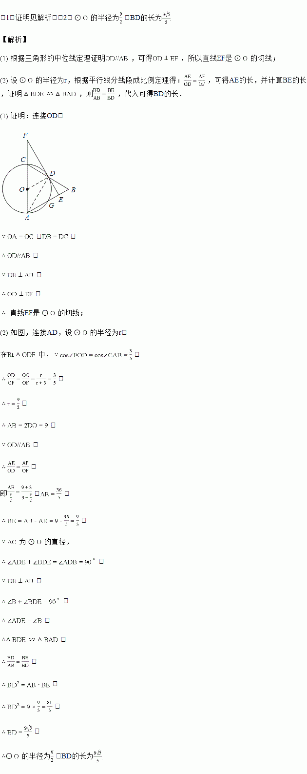 如图,在中,以AC边为直径作交BC边于点D,交AB于点G,且D是BC中点,,交AB于点E,交AC的延长线交于点F.