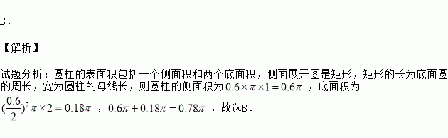 圆柱形油桶(有盖)的底面直径为0.6m,母线长为1m,则油桶的表面积为( )