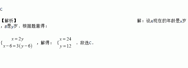 六年前,A的年龄是B的年龄的3倍,现在A的年龄是B的年龄的2倍,A现在的年龄是( ).