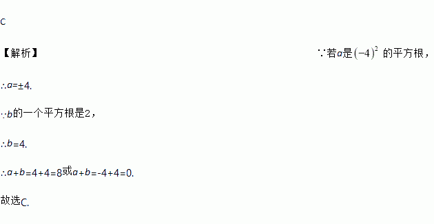 A. 8 B. 0 C. 8或0 D. 4或-4