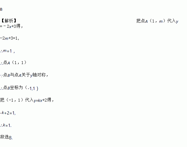 如图,在平面直角坐标系中,点A(1,m)在直线y=﹣2x+3上,点A关于y轴的对称点恰好落在直线y=kx+2上,则k的值为( )
